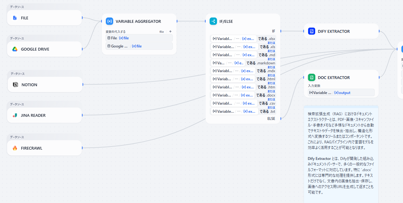 - DIFY EXTRACTOR: Excel(, )、マークダウン(, , )、HTML(, )、Word()、テキスト(, )に対応