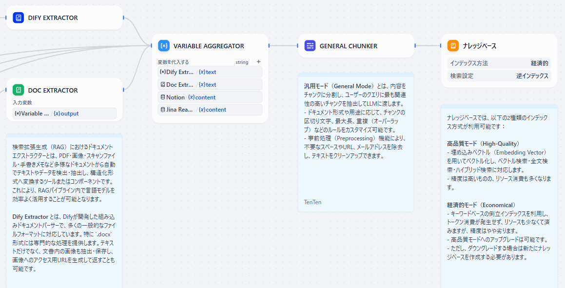 また、今回は試しませんでしたが、ワークフローにOCR機能などを組み込むことで、画像データもナレッジベースの対象として活用できます。