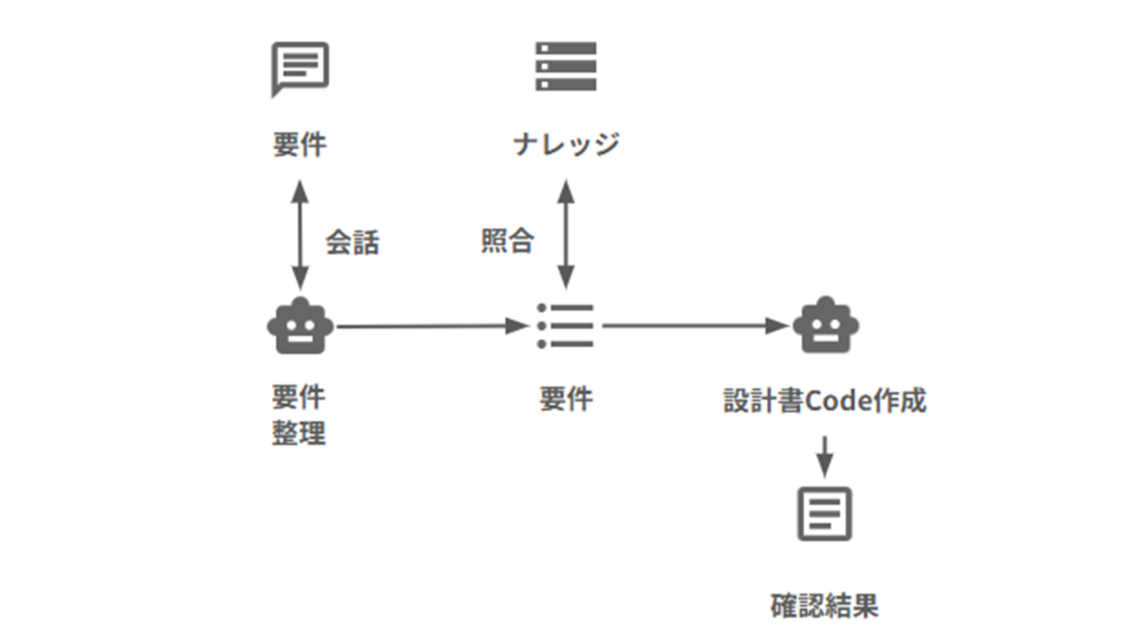 | 設計書の作成・レビューに多くの時間と工数が必要 | チャットベースで要件を整理でき、作業スピードが向上 |