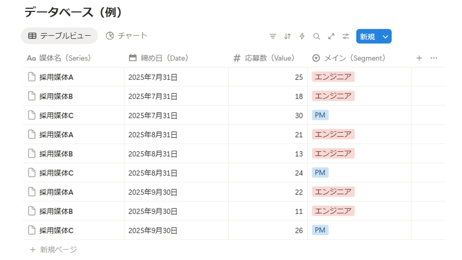 | Segment(任意) | 🔤テキスト 🔻選択 ≔マルチセレクト など | チームや地域などの追加カテゴリ分けに便利 |