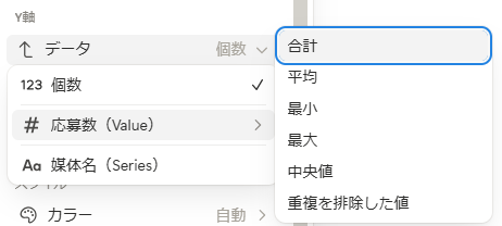 - Y軸>データ>Value>「合計」を選択
