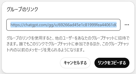 - 招待リンクを共有すれば、社内外問わず、Free / Go / Plus / Pro いずれかのアカウントでログインしている ChatGPT ユーザーなら参加可能