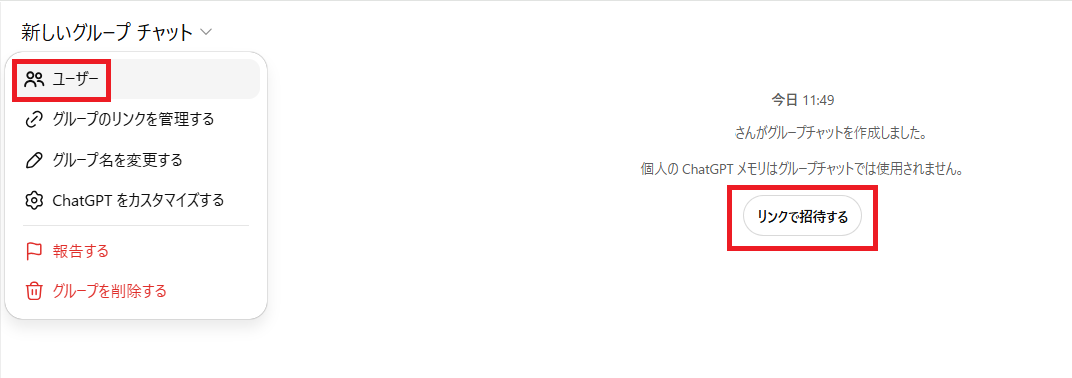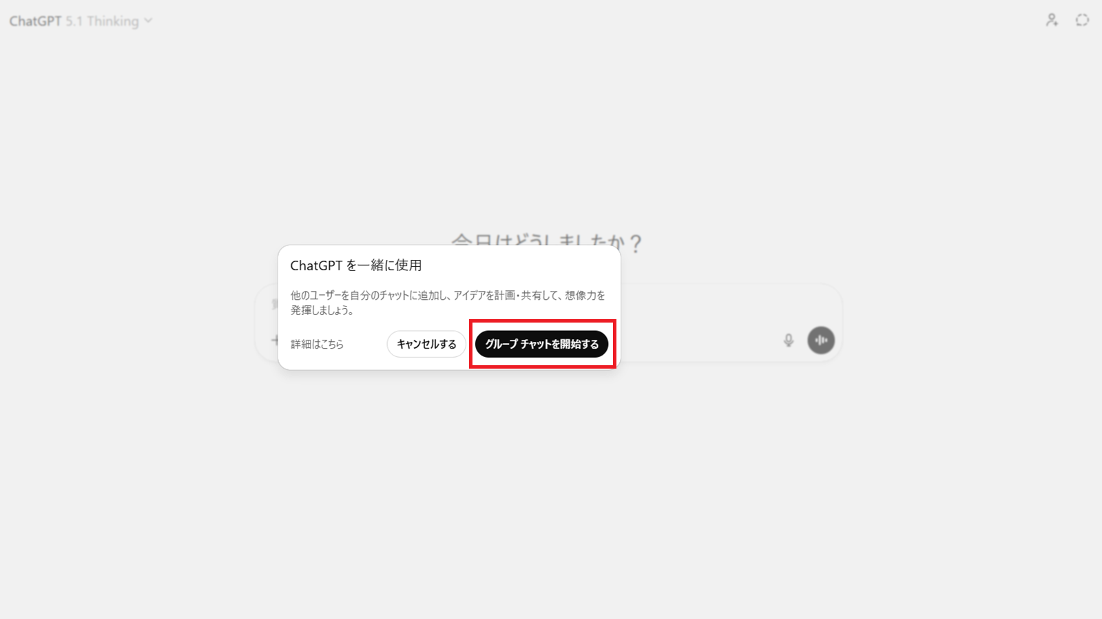 - ただし、Canvas や Deep Research など一部の強力機能は、現時点ではグループチャット外のみ