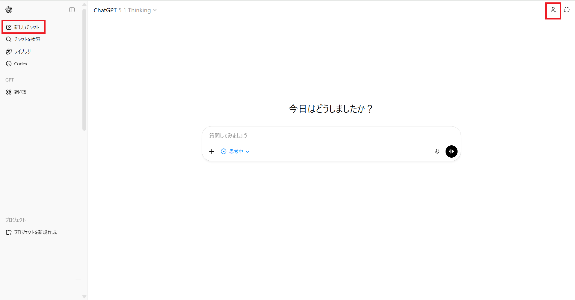 - 画面左上の「New chat(新しいチャット)」から、通常どおり新規チャットを開きます。