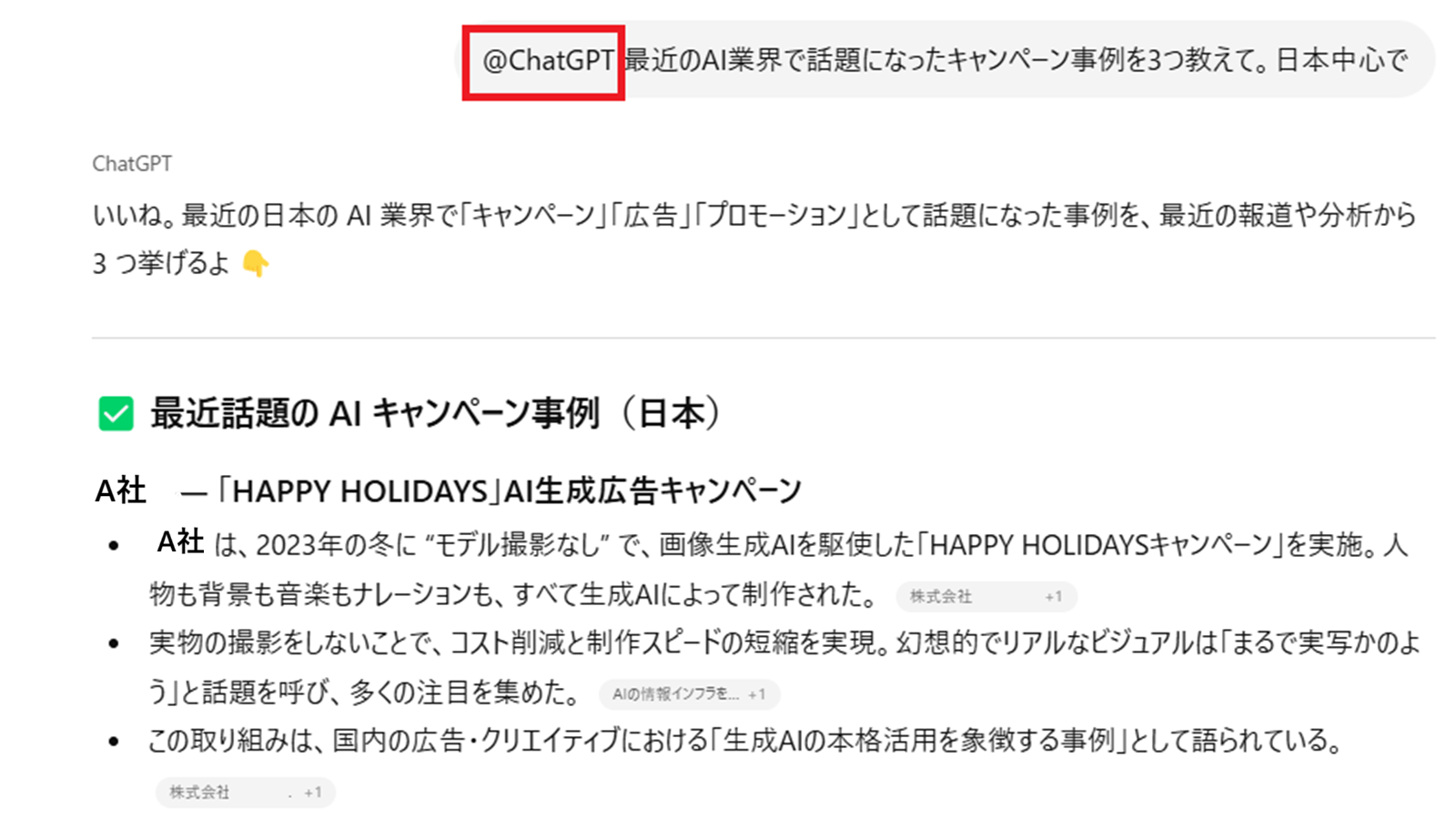 - Free ユーザーが「@ChatGPT これ調べて」と聞く