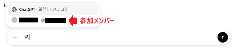 - チャット欄に「@」と入力すると、「chatGPT」や「参加メンバー」の選択肢がでてきます。