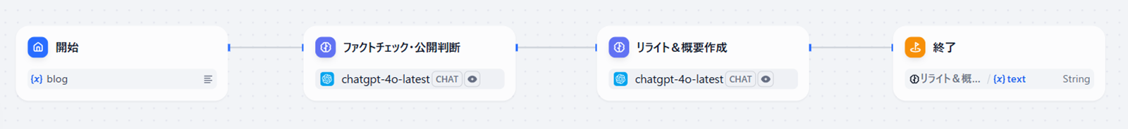 - 開始ノード:ファクトチェック・法的リスクチェック・リライトしたい原稿を入力