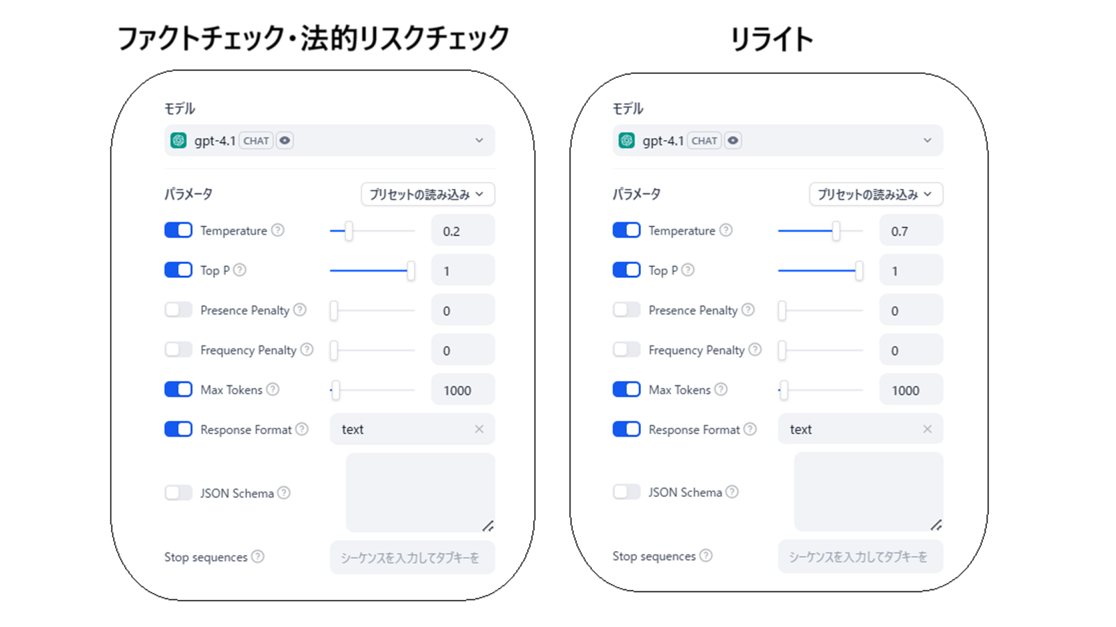 - 「ファクトチェック・法的リスクチェック」と「リライト」の両方を、同一モデルで実施