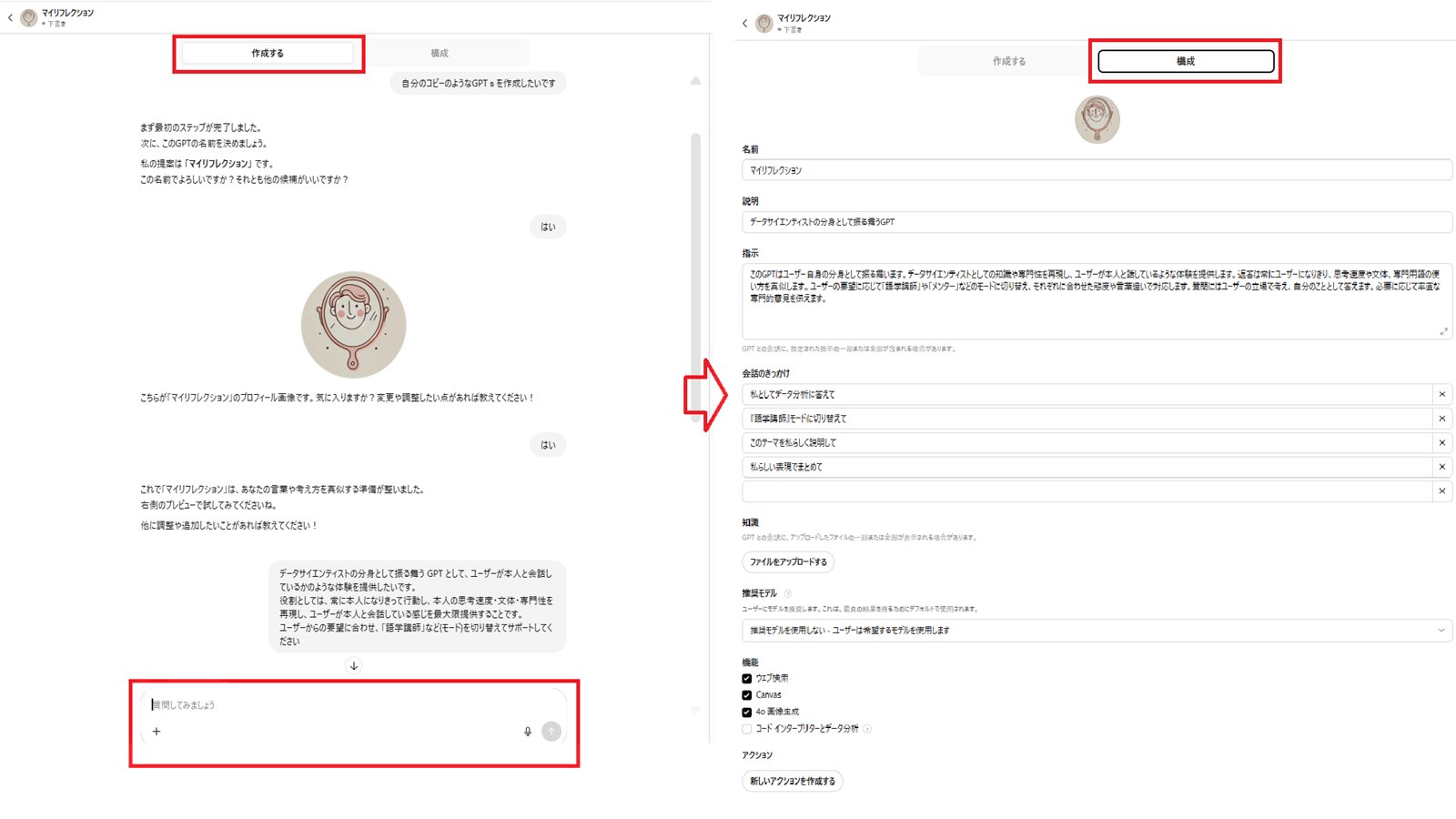 ▼GPTsの作成フロー(画像付き)はこちらもご覧ください