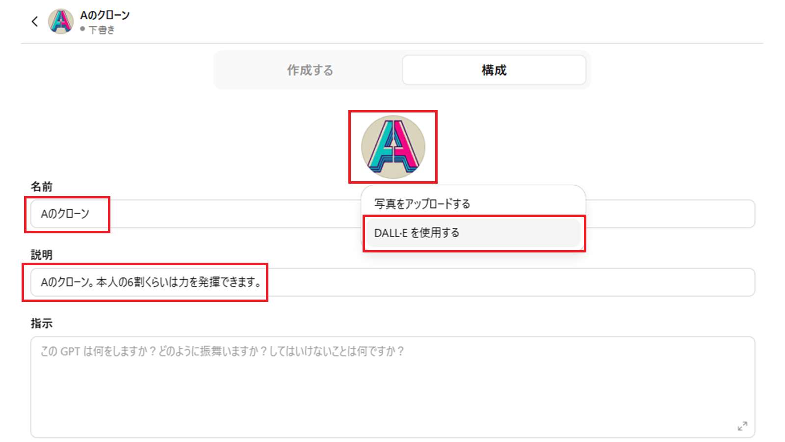 - アイコンは好きな写真をアップロードするか、「DELL-Eを使用する」を押すと自動で作成してくれます。