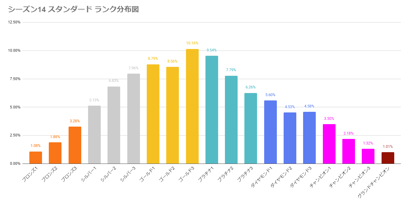 ちなみにGCというのは以下のランクの分布(正規分布になってますね、若干右裾が長いか?)の一番右端のGrand Champion、つまりGCのことです。また時間が作れたらプレイしたいです。