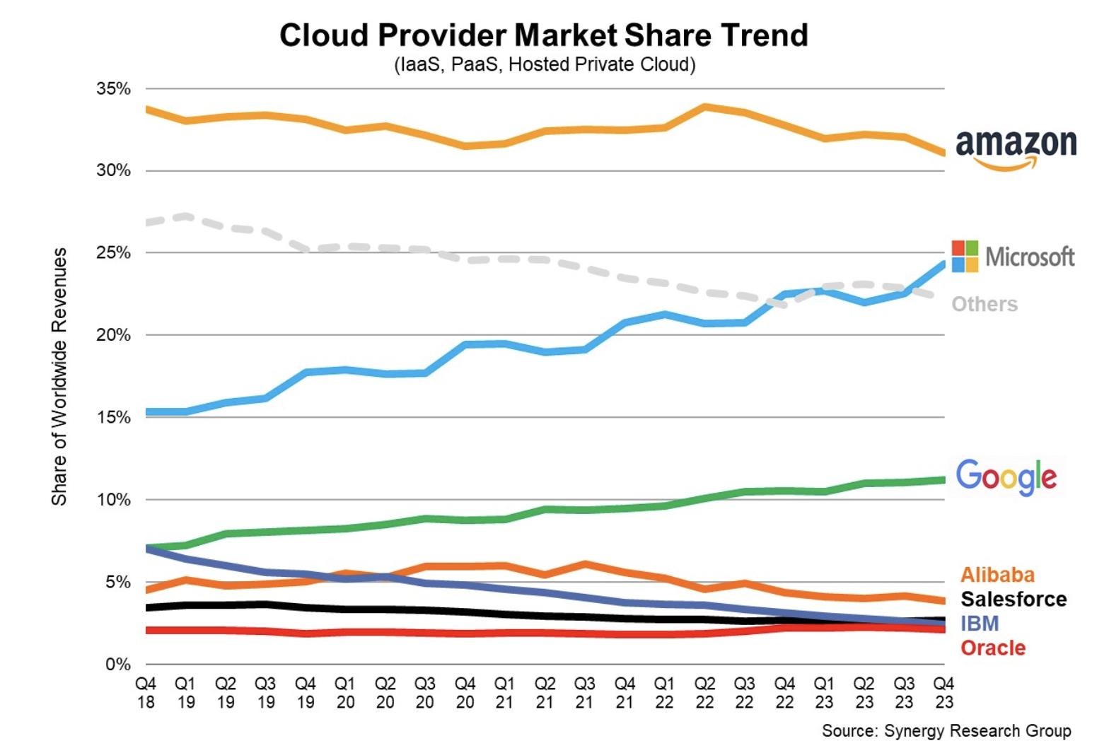 Synergy Research Groupの最新データによると以下2点の考察が挙げられます。