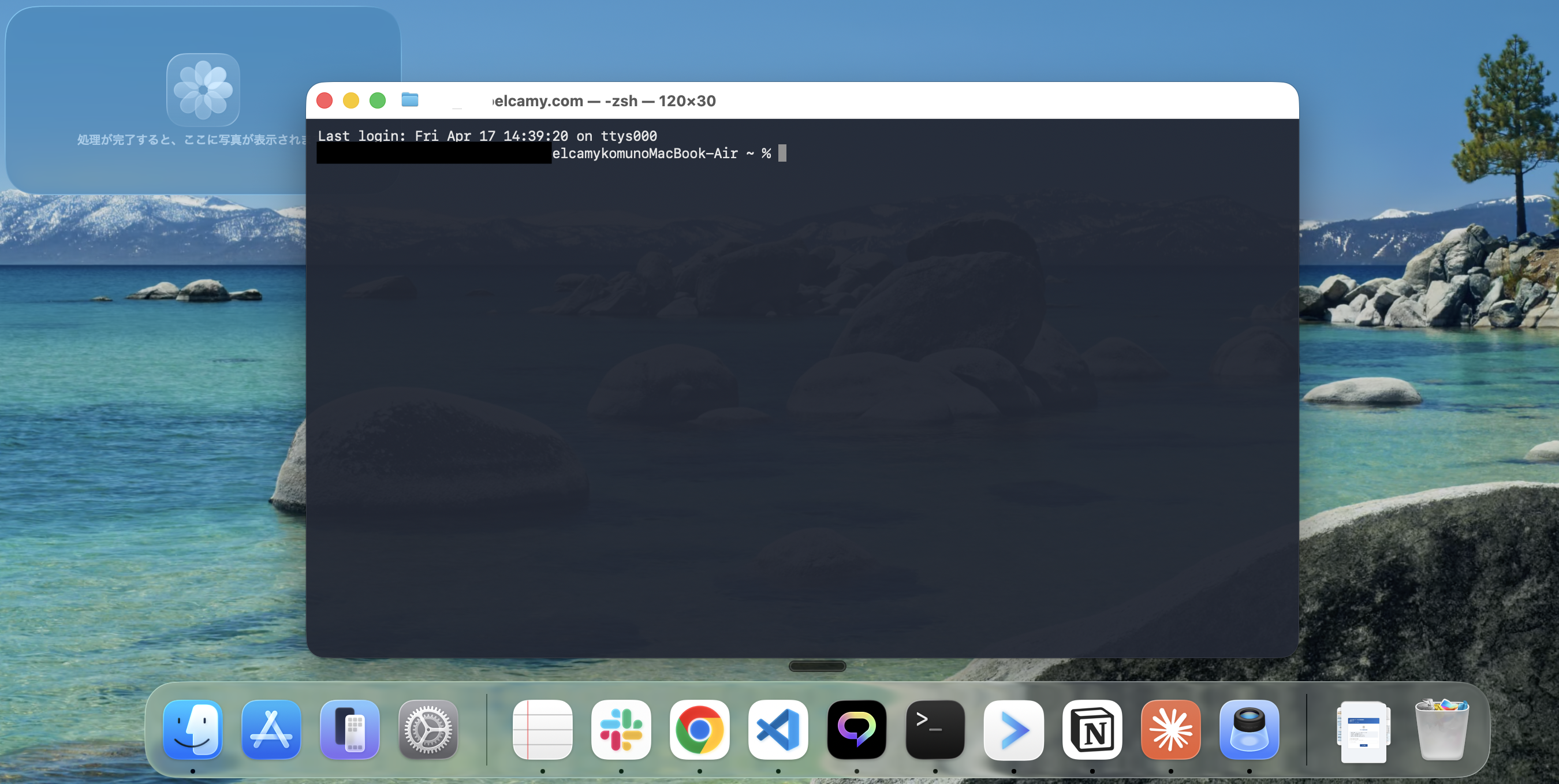 ターミナルが開いたら、以下のコマンドをコピーして貼り付け、Enterキーを押してください。