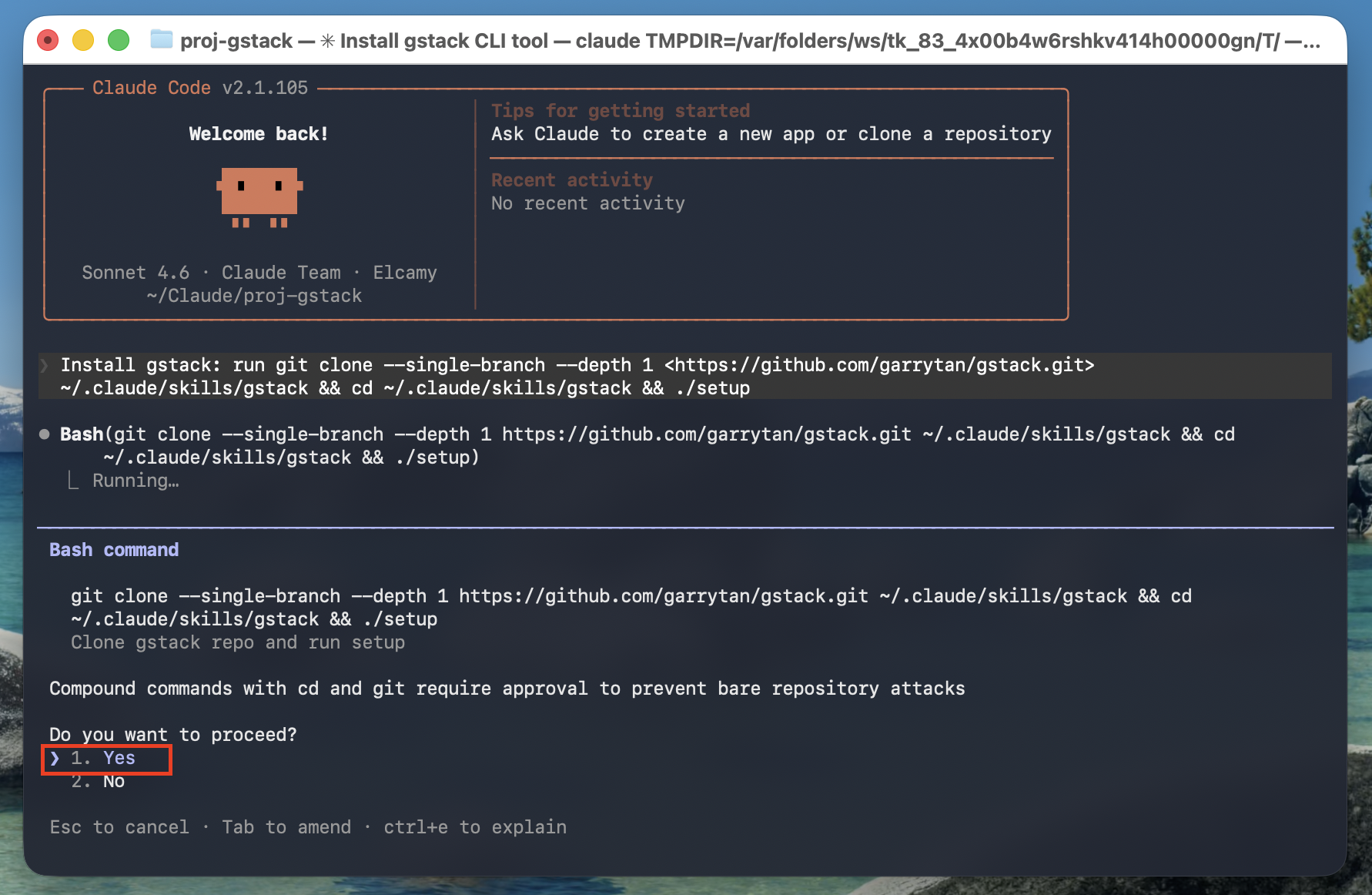 git clone --single-branch --depth 1 https://github.com/garrytan/gstack.git ~/.claude/skills/gstack && cd ~/.claude/skills/gstack && ./setup