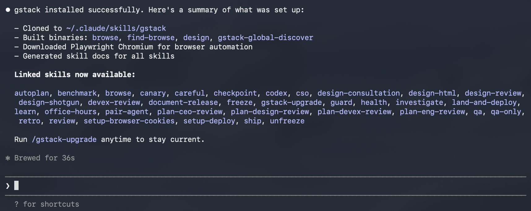 インストールが完了したので、実際にGStackの機能を試していきます。まず、Claude Codeを起動しましょう。