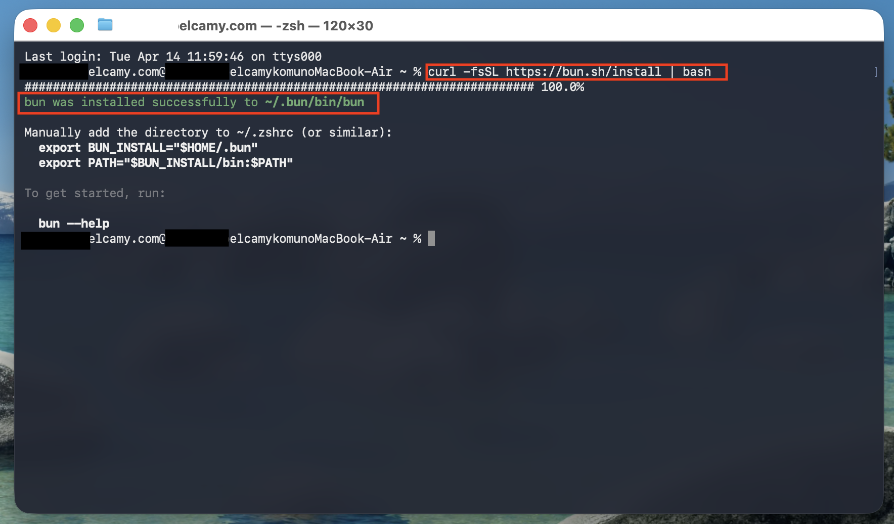 前提条件が揃ったら、以下のコマンドをターミナルにコピー&ペーストして実行してください。1行のコマンドですが、長いのでコピー漏れにご注意ください。