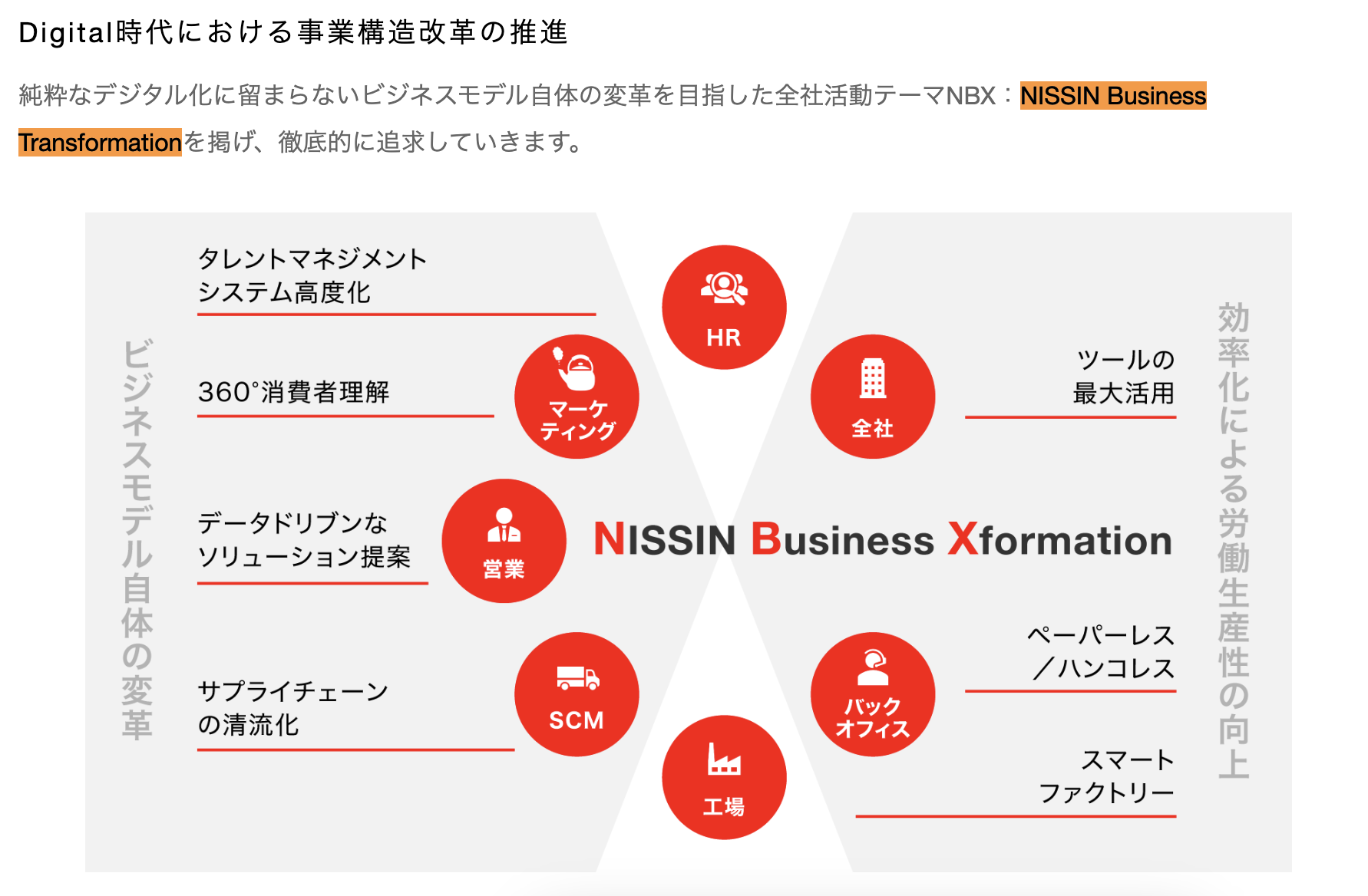 日清食品は、「NBX(NISSIN Business Transformation)」というテーマを掲げ、全社的なデジタルトランスフォーメーションを推進しています。従来の紙ベースの業務プロセスをデジタル化することで、時間やコストの削減だけでなく、よりスピーディーで柔軟な働き方を実現しようとしています。
